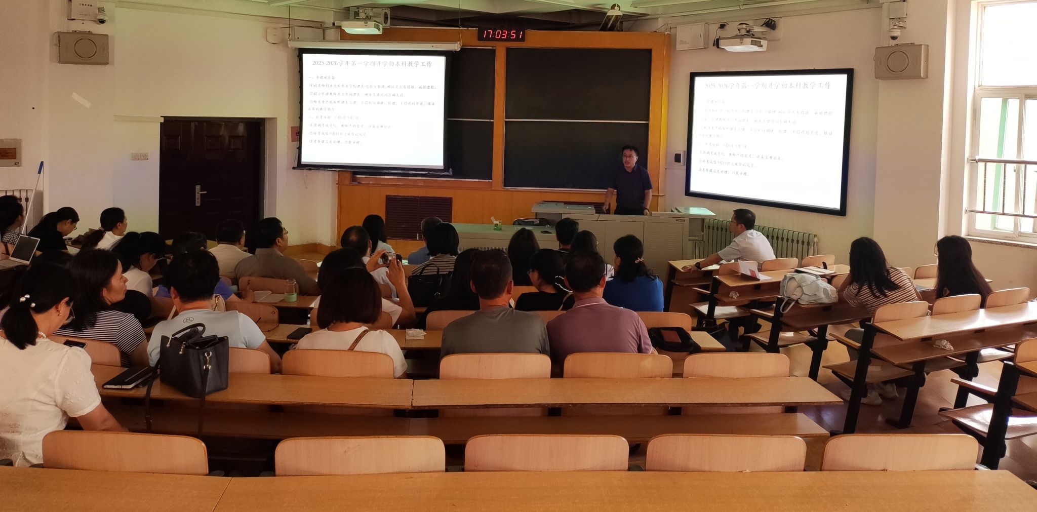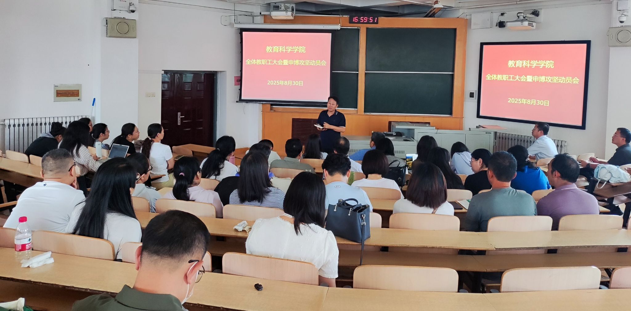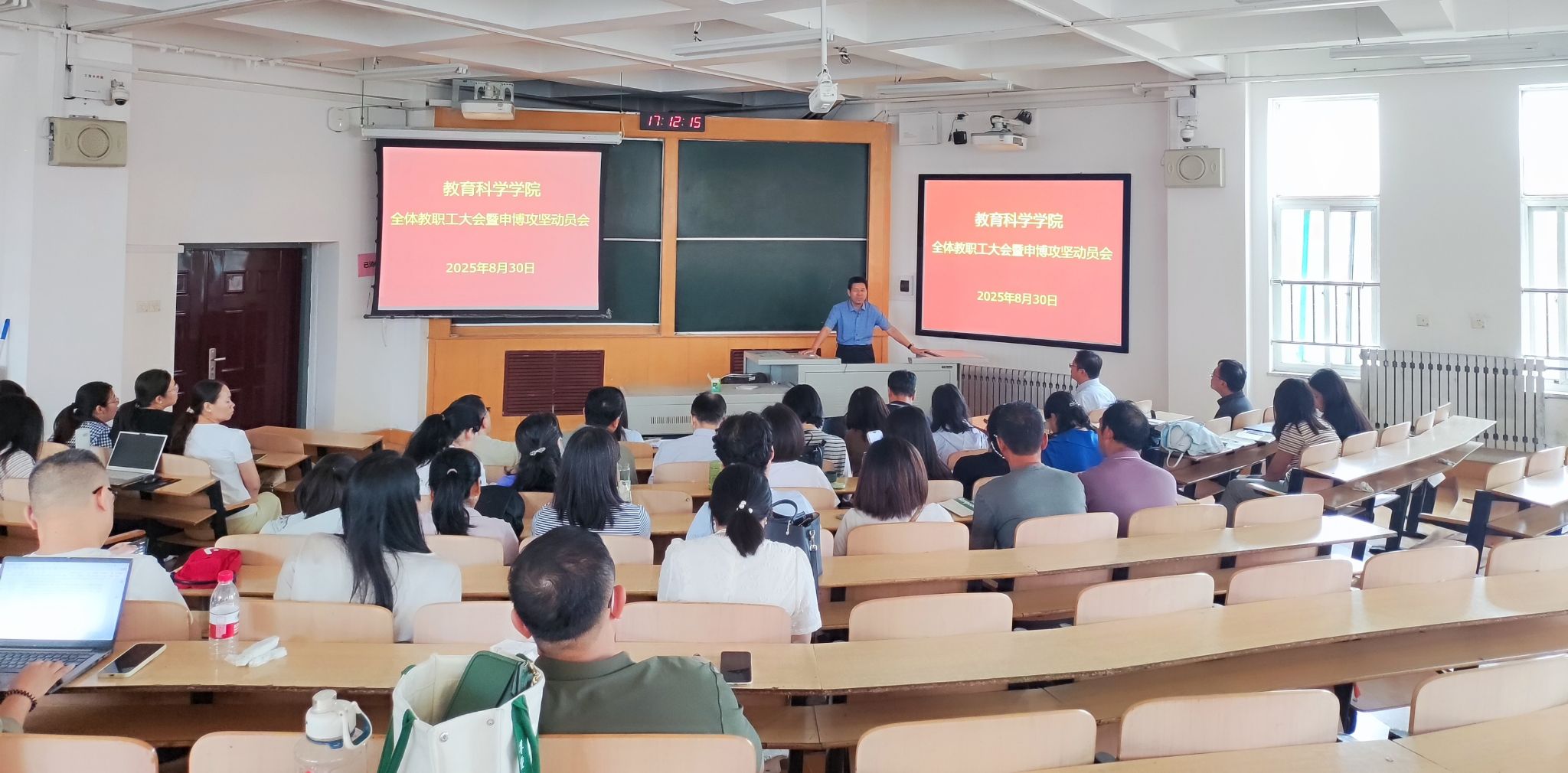 8月30日,学院在南区4号楼313教室召开申博攻坚动员暨新学期全体教职工大会。全体院领导及教职工参加会议,会议由赵英院长主持。