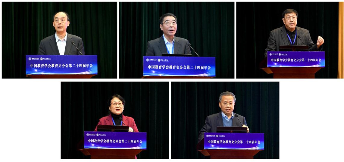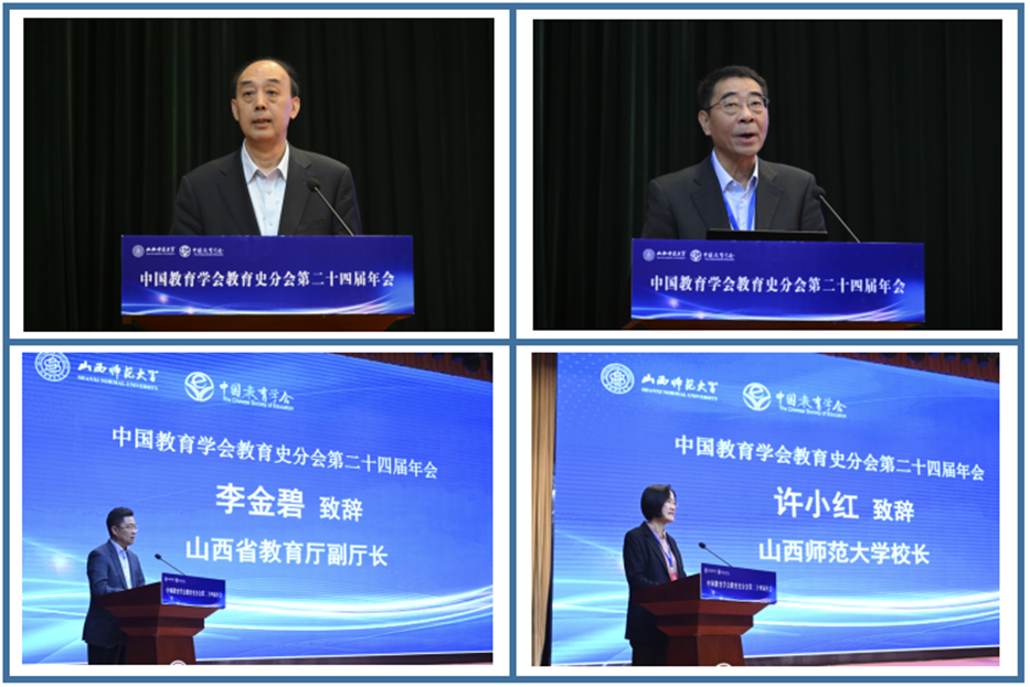 第十三届全国人大常委会委员、湖北省人大常委会原副主任、中国教育学会副会长、华中师范大学国家教育治理研究院院长周洪宇教授和中国教育学会教育史分会理事长、北京师范大学教育历史与文化研究院张斌贤教授分别做了致辞发言。山西省委教育工委委员、省教育厅党组成员、副厅长李金碧同志做了重要讲话。我校校长许小红教授发表了热情洋溢的欢迎辞。