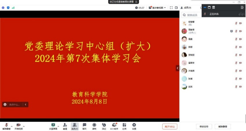 8月8日,伟德官网召开党委理论学习中心组(扩大)2024年第7次集体学习会,学院中心组成员、党支部书记参加会议,会议由院党委书记赵英主持。