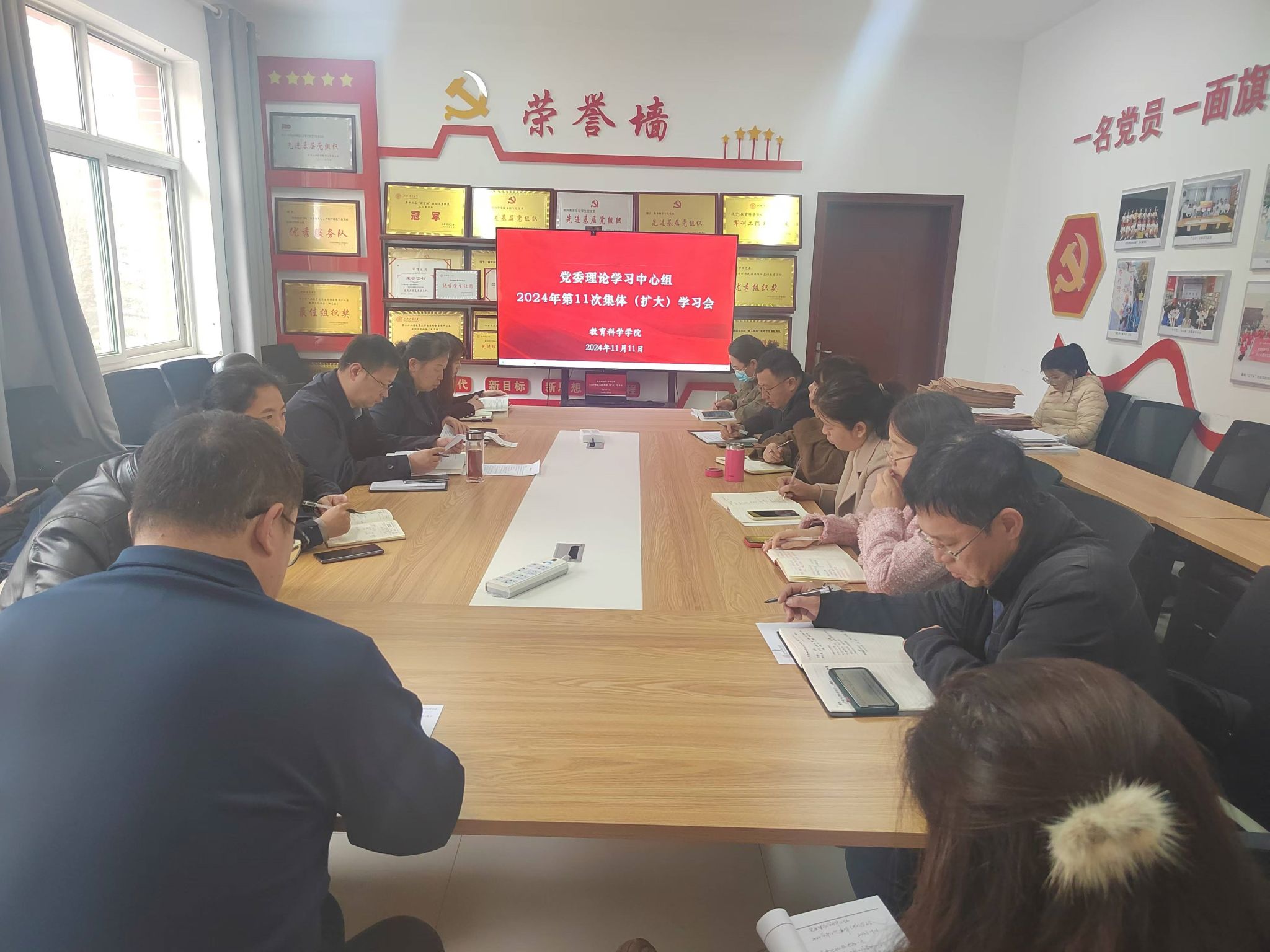 2024年11月11日,院党委理论学习中心组召开扩大会议,专题学习《中国共产党巡视工作条例》《中国共产党纪律处分条例》等内容,院班子成员、院党委理论学习中心组成员、党支部书记、系主任以及院办、工会、团委等负责同志参加会议。会议由院党委书记赵英主持,院长张潮、院党委副书记高霞领学了相关内容。