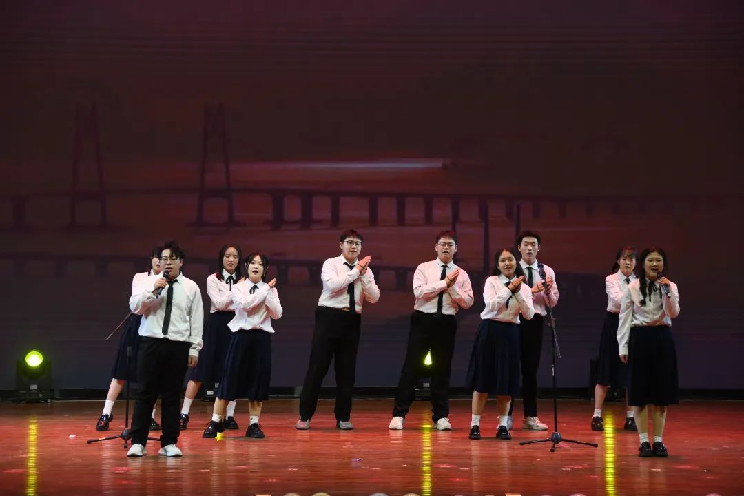 晚会在主持人热情洋溢的介绍中拉开了序幕。起落有致的鼓点,灵动飘逸的身姿,一支支精心编排的舞蹈如同火焰般点燃了现场观众的热情;轻快的伴奏下,《紫荆花盛开》《像你这样的朋友》《日不落》等耳熟能详的歌曲让同学们置身于音乐的海洋;《我的高考》《逃出大英博物馆》等情景剧以其贴近生活的剧情和演员们生动的表演,让观众在欢笑中感受到了进取力量和文化传承的责任感;指尖轻拢慢捻,《濯海令》的悠扬旋律让人沉醉,同学们的思绪也随之飘向那神秘的音乐之境。当熟悉的旋律缓缓流淌而出,全体师生齐声高唱《我爱你中国》将晚会推向了高潮,大家用歌声尽情抒发着对祖国的无限热爱,也为这台精彩纷呈的晚会增添了最动人的一抹亮色。