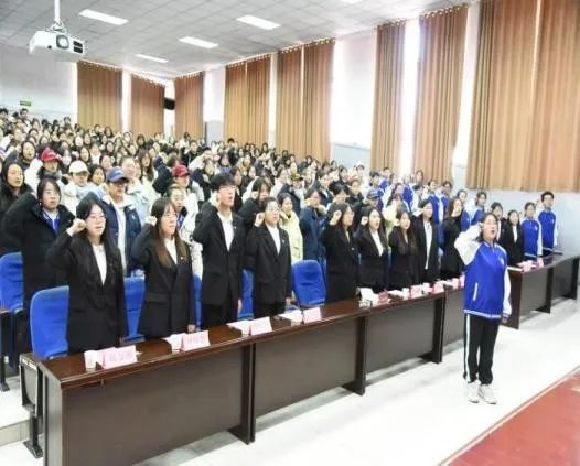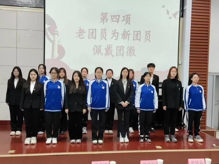 学生代表张美琴领学党的二十届三中全会精神,助力团员提升思想政治觉悟,锻炼过硬本领,勇担时代重任。老团员为新团员佩戴团徽,激励他们以青春热血践行誓言,于时代舞台绽放光彩。新老团员代表发言,共绘团组织光辉前景,彰显青春蓬勃力量。