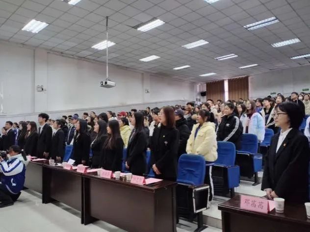 会议伊始,全体成员迎团旗、奏唱团歌,重温入团誓词,字字铿锵有力,句句掷地有声,展现了团员们的青春活力和对共青团的热爱。