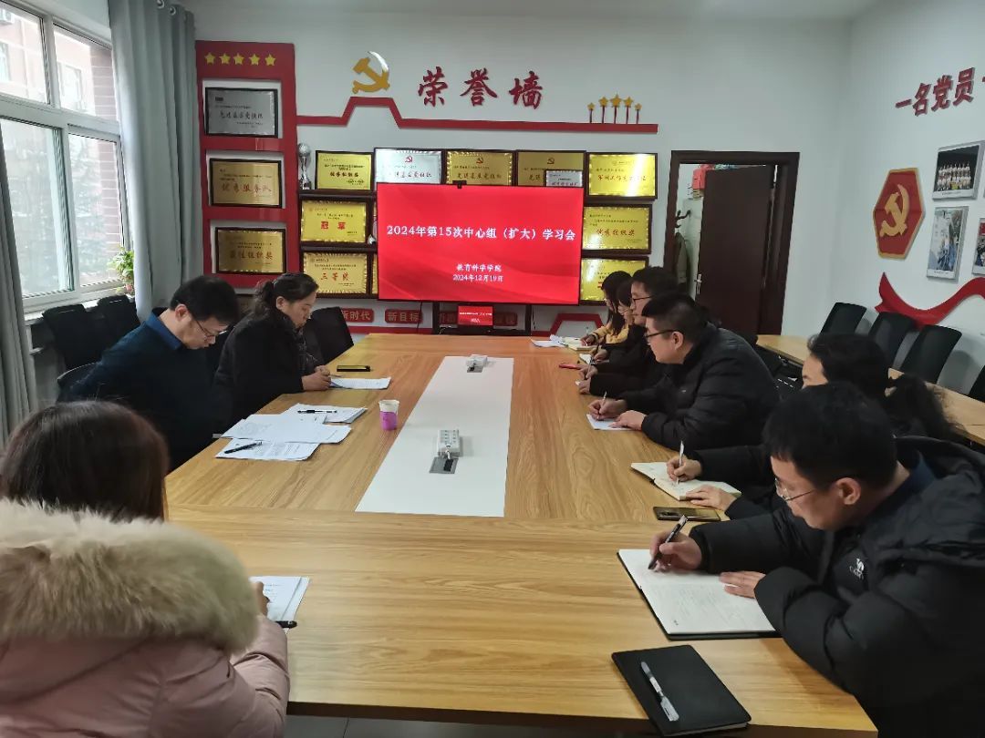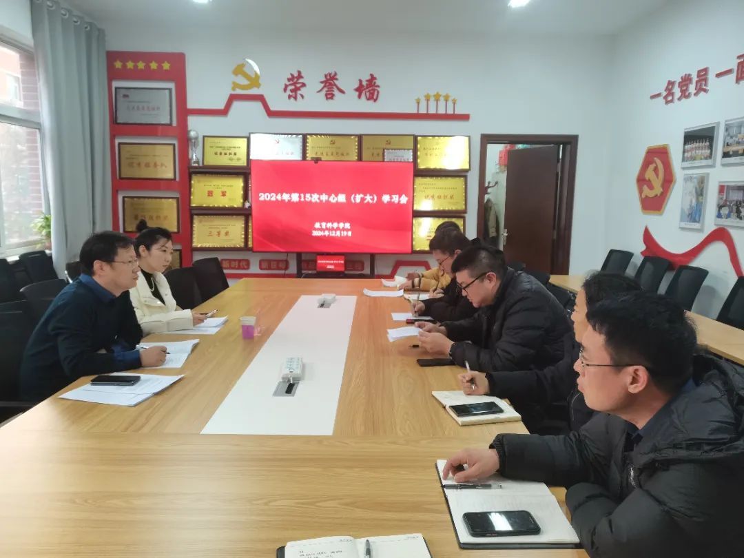 12月19日,伟德官网在8号楼201会议室召开2024年党委理论学习中心组(扩大)第15次集体学习会,院班子成员、院党委理论学习中心组成员、党支部书记参加会议。会议由院党委书记赵英主持,校团委书记杨谨瑜列席旁听了学习会。