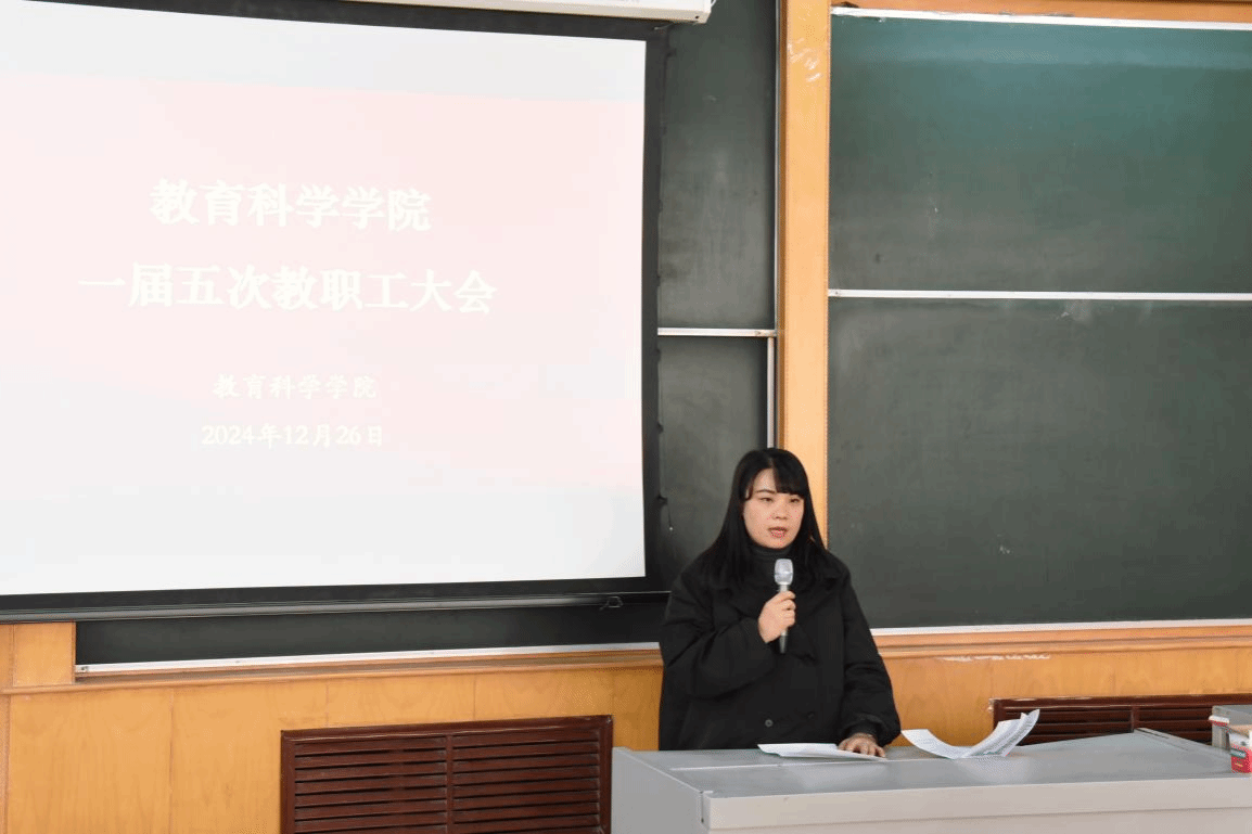 张潮院长作了题为《凝心聚力 继往开来 谱写学院高质量内涵式发展新篇章》的工作报告。报告从专业建设、学科建设、人才培养、师资建设、社会服务等五方面全面回顾了过去一年的工作。张潮指出,学院以“立德树人、以本为本、崇尚学术、服务社会”的办学理念为引领,以立德树人为根本任务,以学生的健康成长为目标,以服务社会为宗旨,攻坚克难,全力推动学院的重点工作,顺利完成了2024年的工作任务。报告还客观地指出了学院发展面临的困难,并明确了2025年的工作目标,重点从抓好人才培养质量工作、推动学科建设和科学研究、加强师资队伍建设、坚定推进开放办学四个方面进行了部署。最后张潮院长希望全院上下团结一心,秉持“团结创造,求实奋进”的校训,聚焦新时代教育,紧抓时代变革之机遇,聚力内涵建设,不断开创学院各项事业的新局面。
