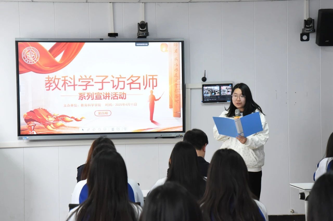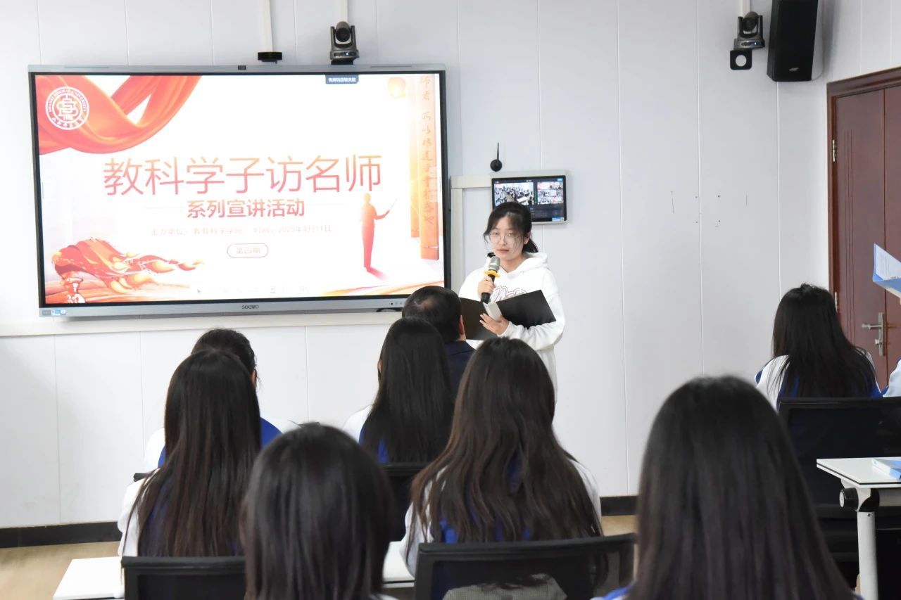 4月11日,伟德官网在南区8号楼212会议室举办教科学子访名师第四期宣讲活动。院党委书记赵英、院党委副书记高霞、院团委副书记高敏君及20余名学生代表参加了此次活动。
