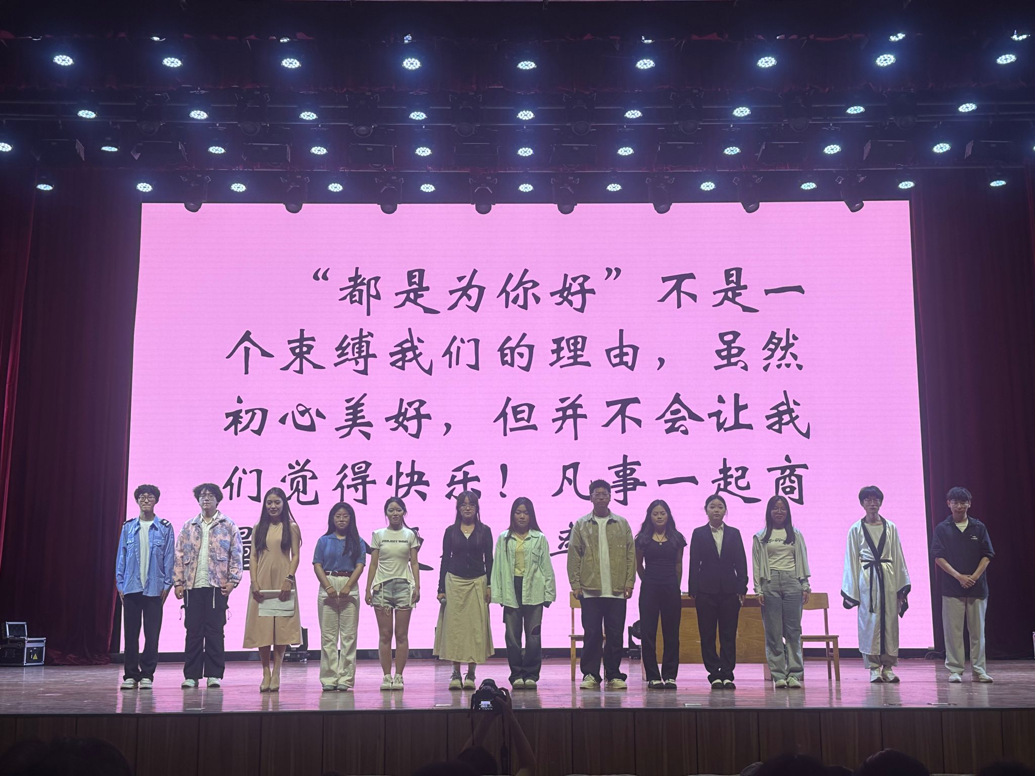 开场舞《小卜少》让观众在曼妙舞姿里,感受傣族文化中人与自然和谐共生的浪漫与独特魅力。情景剧《古今师道之新说》通过古今对话,深入探讨教育理念的传承与发展;《破晓》生动展现了革命先辈为理想信念不懈奋斗的光辉历程;《泊秦淮》以深沉笔触警示青年铭记历史、勿忘国耻;《都是为你好》演绎传统亲情,引发观众情感共鸣;《苏东坡》辅之古筝伴奏,生动再现文豪豁达洒脱的人生态度;《传统文化不能忘》则以诙谐幽默的方式,呼吁大家守护与传承中华优秀传统文化根脉。