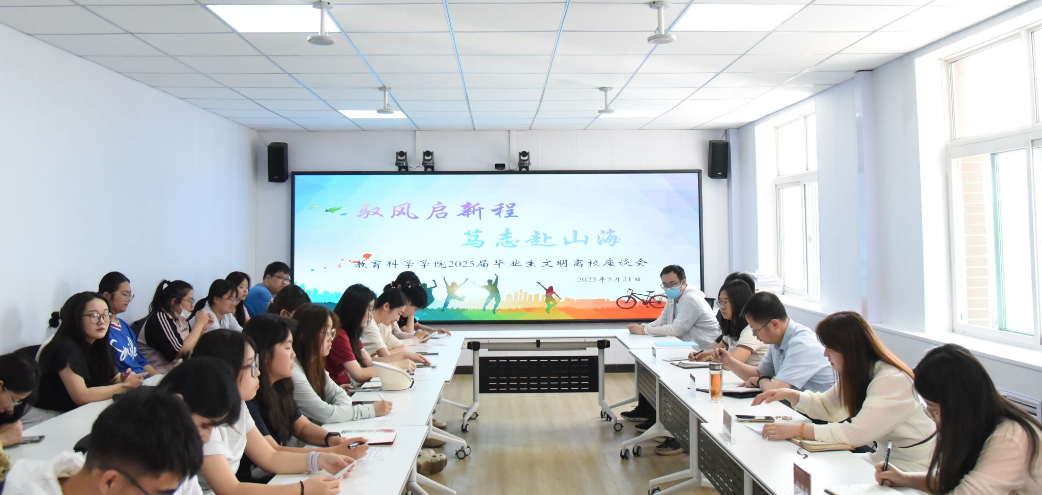 驭风启新程,笃志赴山海。5月21日,伟德官网在8号楼212会议室举办了第九期“师生对话时间”暨2025届毕业生文明离校座谈会。院党委书记赵英、院党委副书记高霞、院团委书记高敏君、就业指导专员段慧馨与30余名毕业生代表共叙别情,共话未来。