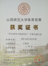 2018 年 “阳光体育与祖国同行”冬季长跑比赛团体 2000 米计时赛三等奖