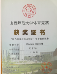 2017 年 “阳光体育与祖国同行”冬季长跑比赛团体 2000 米计时赛三等奖