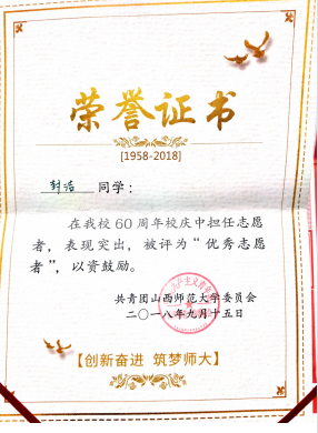 2018年60周年校庆优秀志愿者