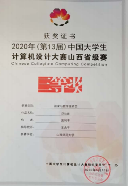 2020年中国大学生计算机设计大赛山西省三等奖